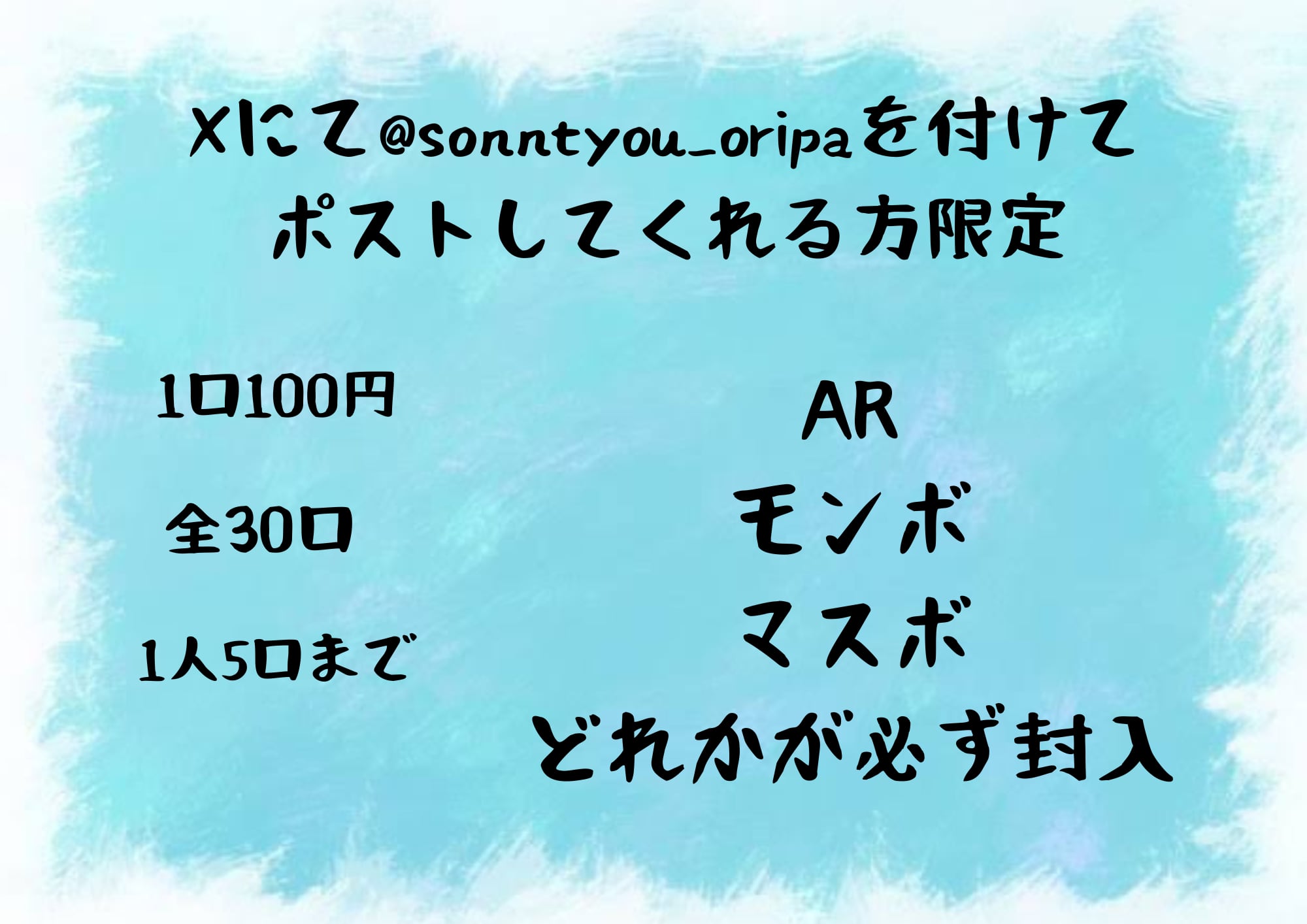 オリパ内容は全てランダムですのでクレームやリターンは受け付けておりません。