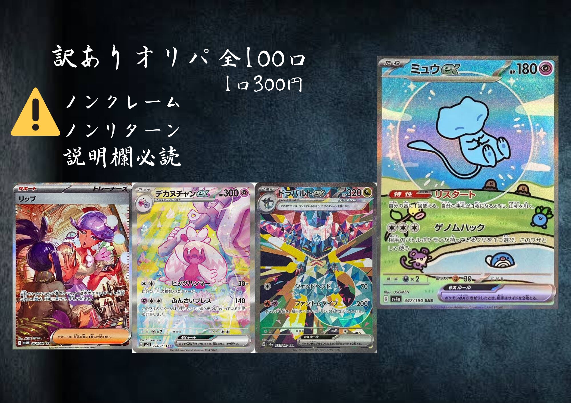 オリパ内容は全てランダムですのでクレームやリターンは受け付けておりません。