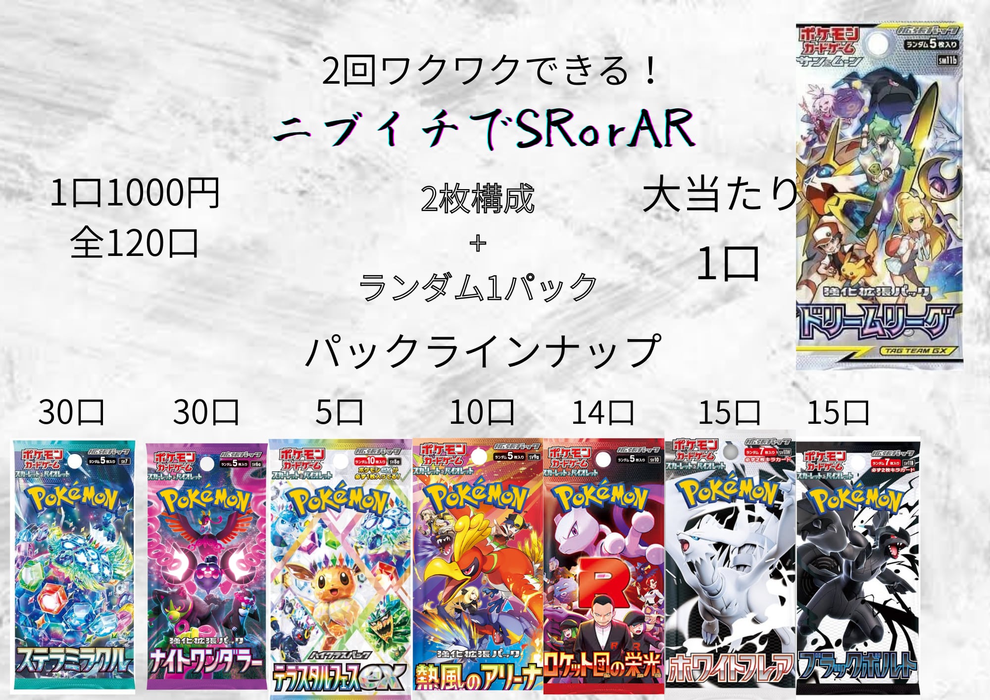 オリパ内容は全てランダムですのでクレームやリターンは受け付けておりません。